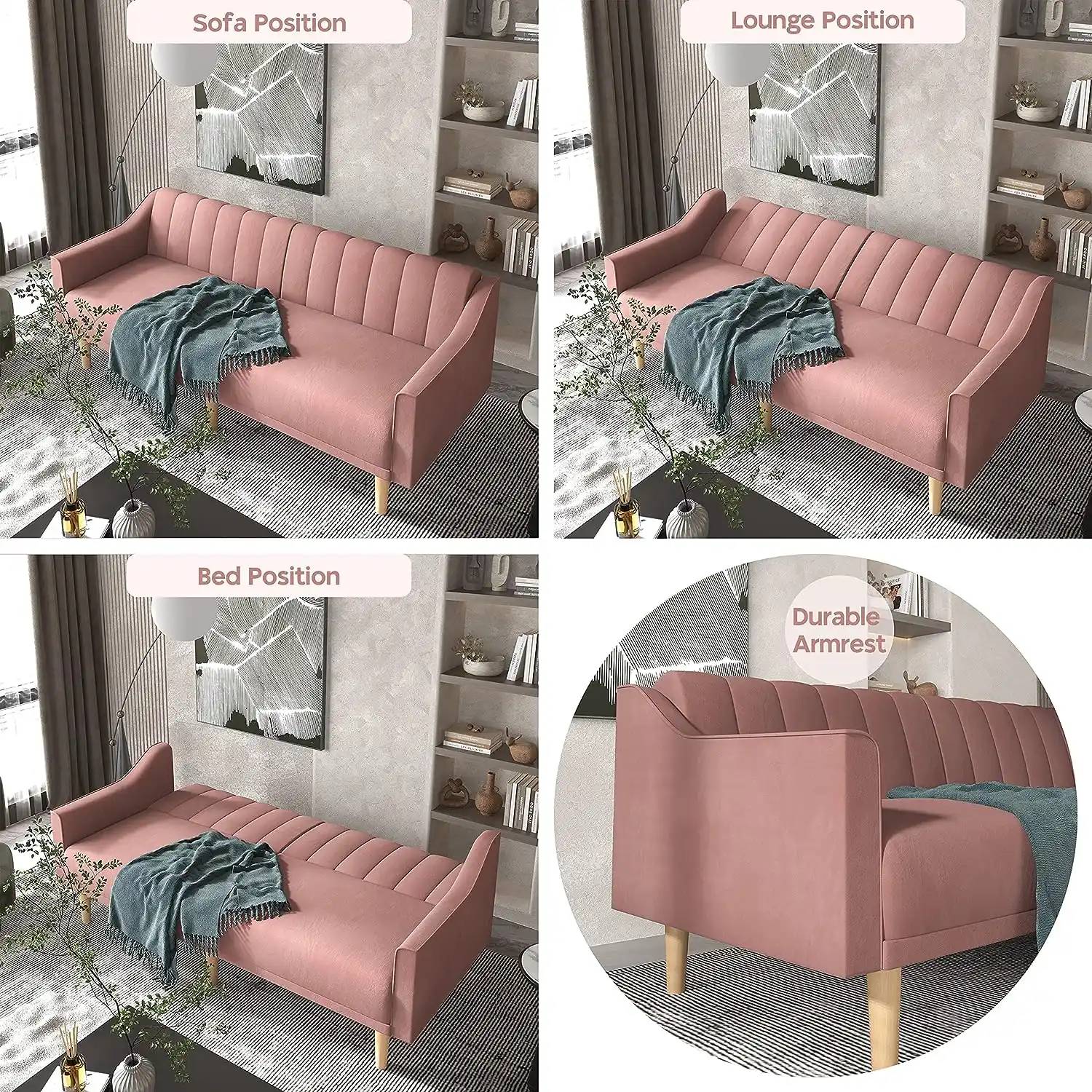 SOFA : Lonkwa Velvet Futon Sofa Bed Couch